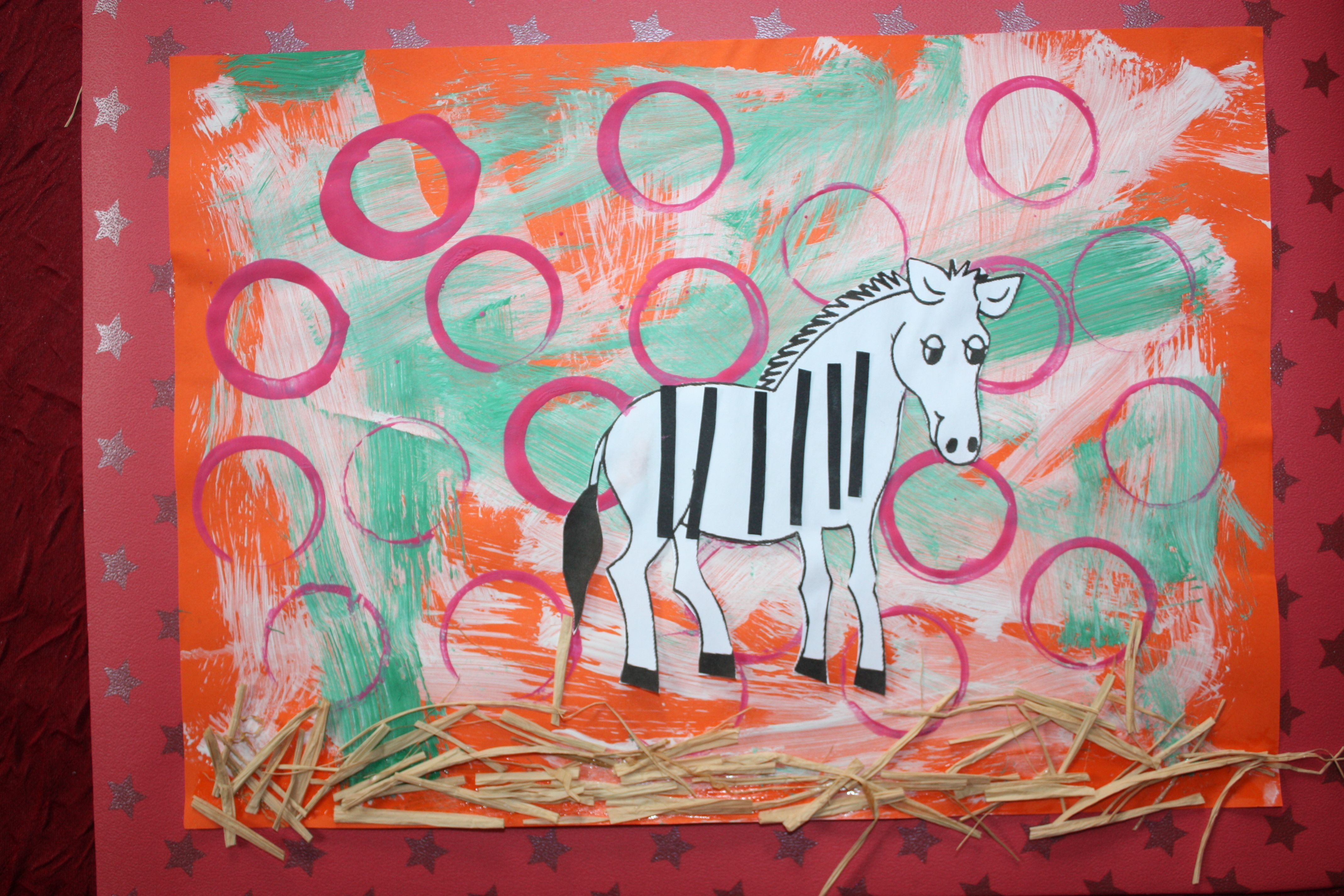 Voici les premiers tableaux de l’année ou peintures , collages étaient au rdv ….Je crois que beaucoup de zèbres ont beaucoup galopé lol…. leurs traits ont un peu bougé :) Bravo mes p’tits loups car pas si facile que ça de coller ! Super activité motricité fine ….